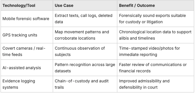 - Advanced tools—real-time surveillance, mobile forensics, and GPS monitoring—that support timely, court-ready deliverables.